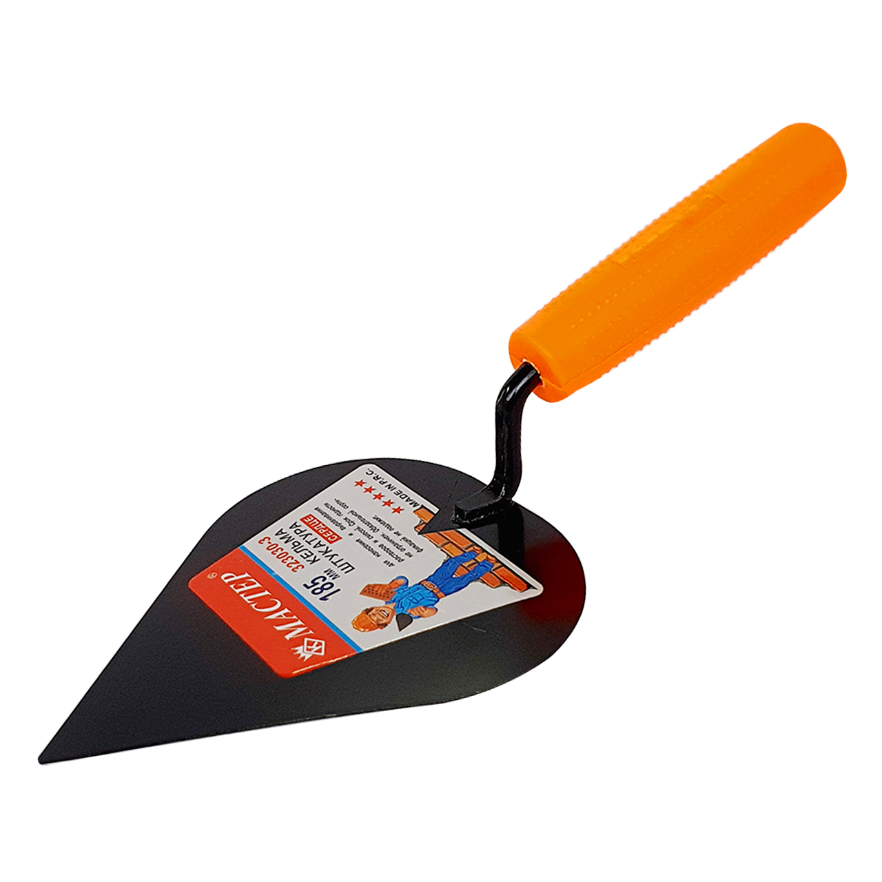 Кельма для штукатура 185 мм выполнена в форме сердца (капли) и применяется для кладки кирпича, перемешивания растворов и нанесения штукатурно-отделочных материалов на обрабатываемую поверхность. На гибкое стальное полотно штукатурной кельмы нанесено специальное антикоррозийное покрытие для увеличения срока службы инструмента. Пластиковая рукоять с рельефной поверхностью не скользит в руке и легко моется.